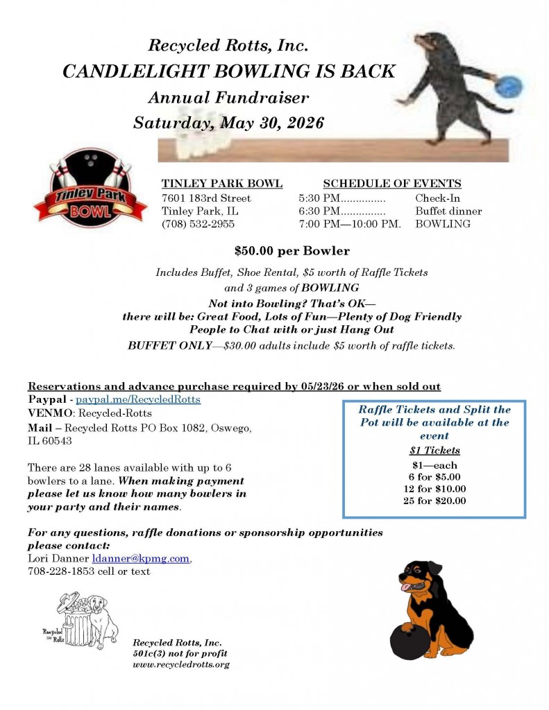 If you are interested in including CUJO in your home, please go to our website http://www.recycledrotts.org/wp/?page_id=150 for the rescue location (Recycled Rotts is located in the far west suburbs of Chicago IL), placement policies/fee, PLACEMENT AREA and the link to our online application. NOTE: We make calls to prospective adopters from our personal phones and always leave a message. If you do not answer numbers you don’t recognize, please check your messages.