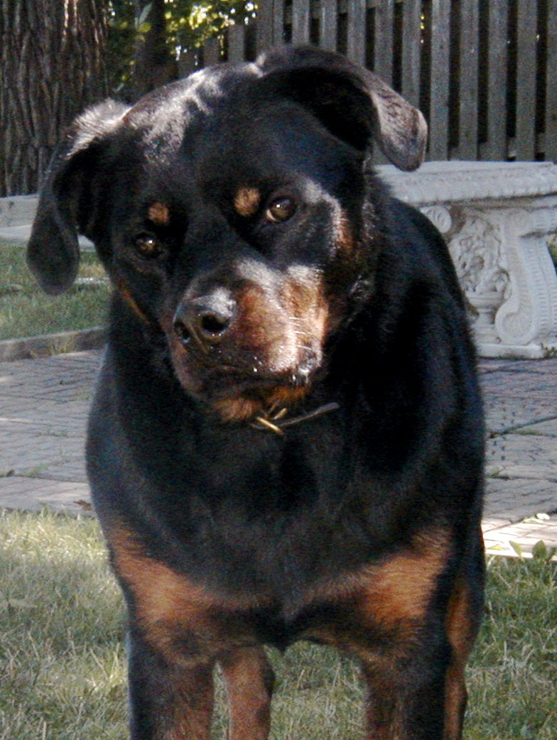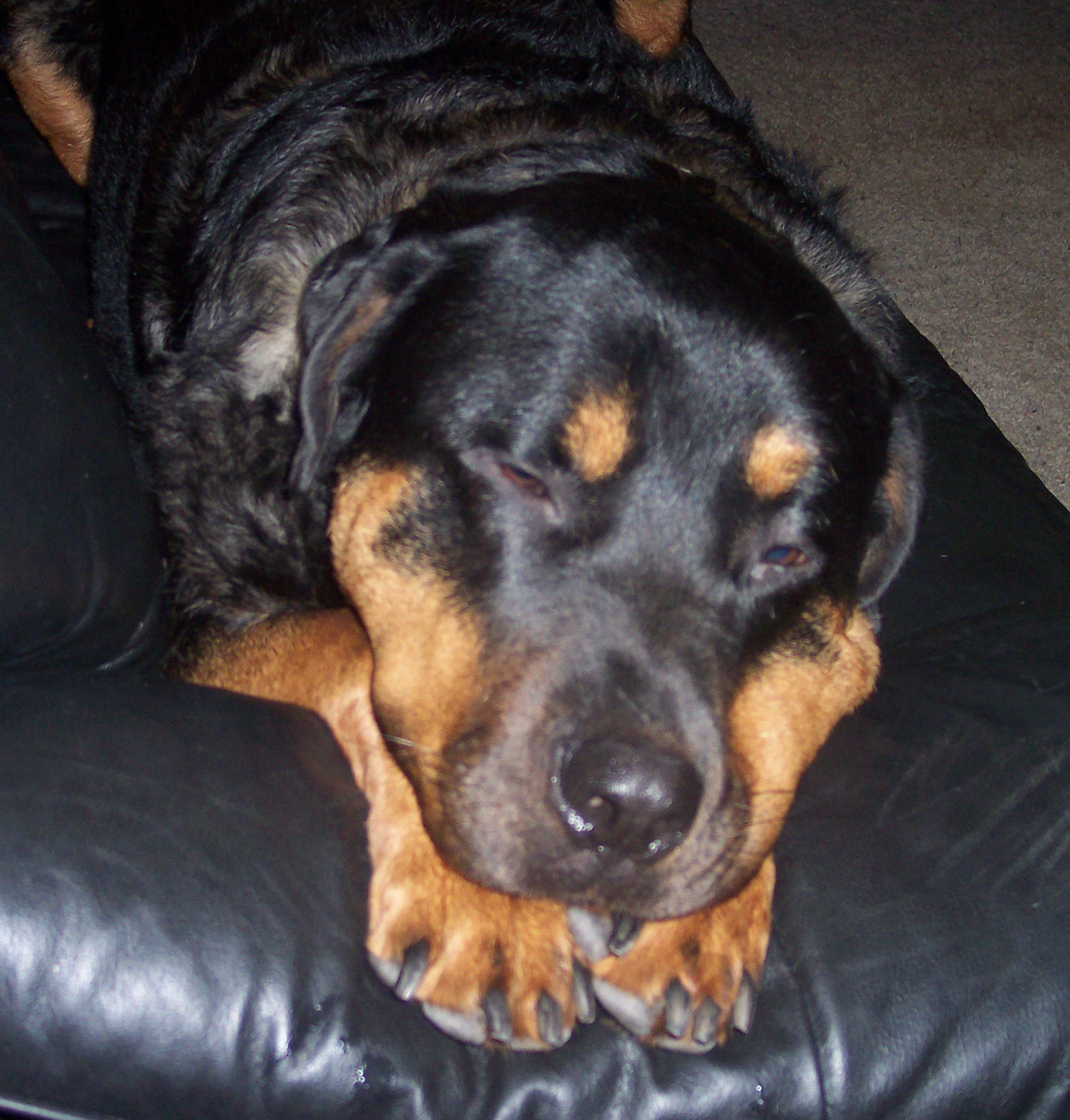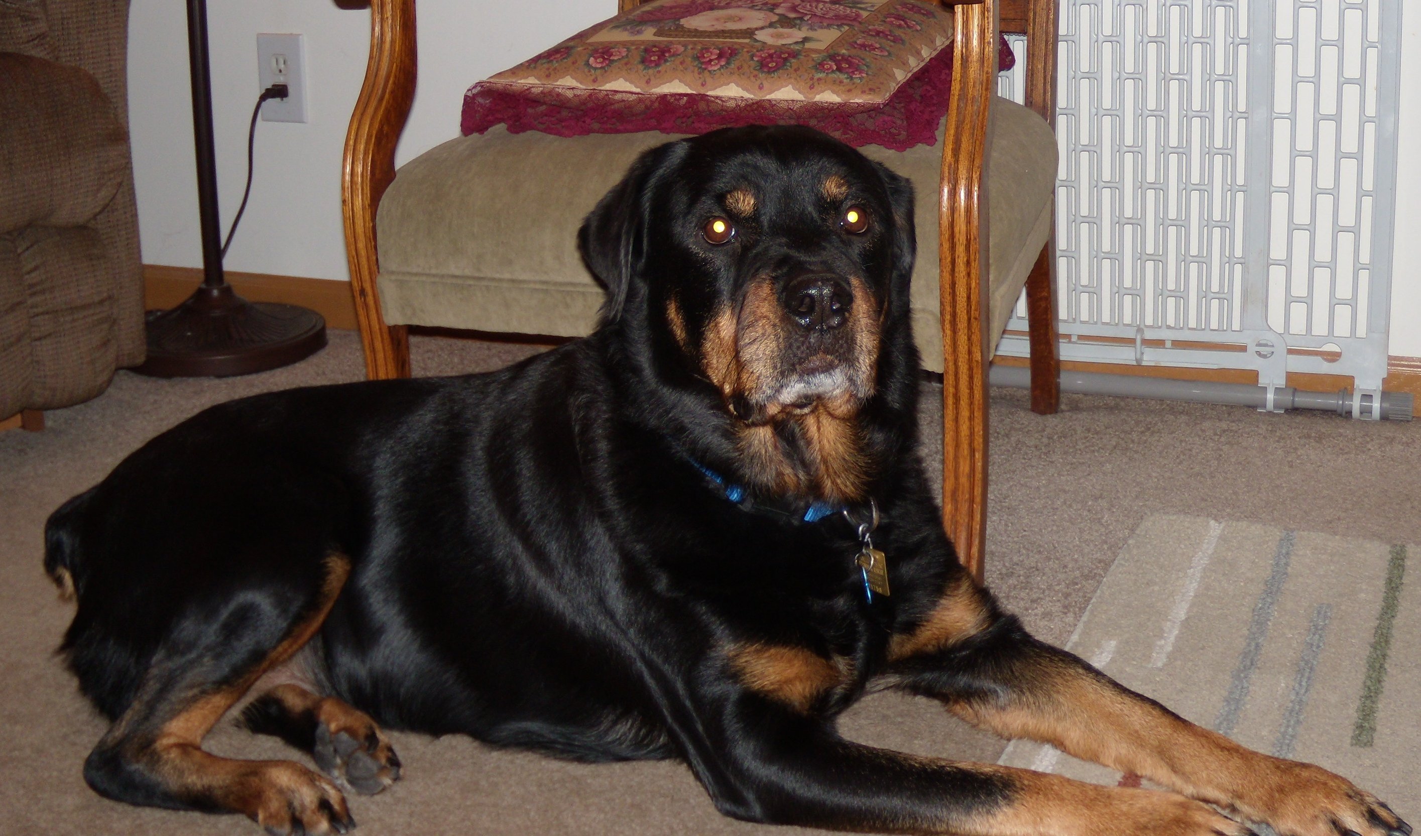 "We will miss his noble heart, his regal profile, his Rottie "purrs" and the way he would plot his ginormous head in our laps when he wanted attention. He was as loving a dog as we have ever met."